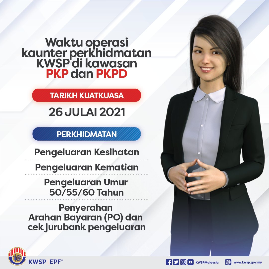 Kwspmalaysia Twitterissa Berikut Merupakan Waktu Operasi Bagi Kaunter Perkhidmatan Kwsp Di Kawasan Pkp Dan Pkd Berkuatkuasa 26 Julai 2021 Ini Pastikan Anda Membuat Janji Temu Online Jto Melalui Https T Co Swvambw8uv Sebelum Hadir Untuk
